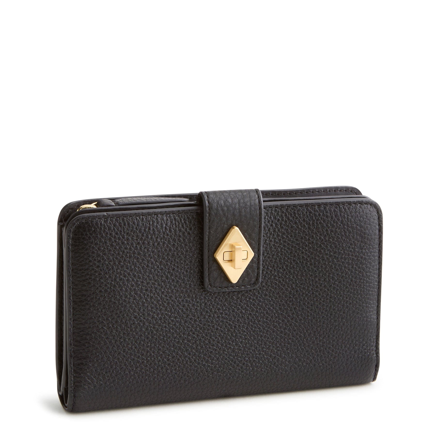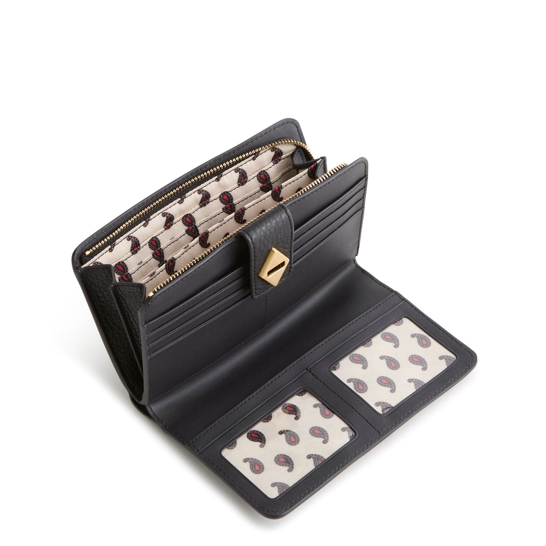 Sophisticated and thoughtfully designed, this Turnlock Wallet keeps everything beautifully in place. Featuring two dedicated compartments — one secured with a sleek zip closure and the other finished with a refined turnlock — it offers effortless organization without sacrificing style. Multiple pockets keep cards, cash and essentials neatly arranged, making it the perfect blend of form and function for everyday ease.