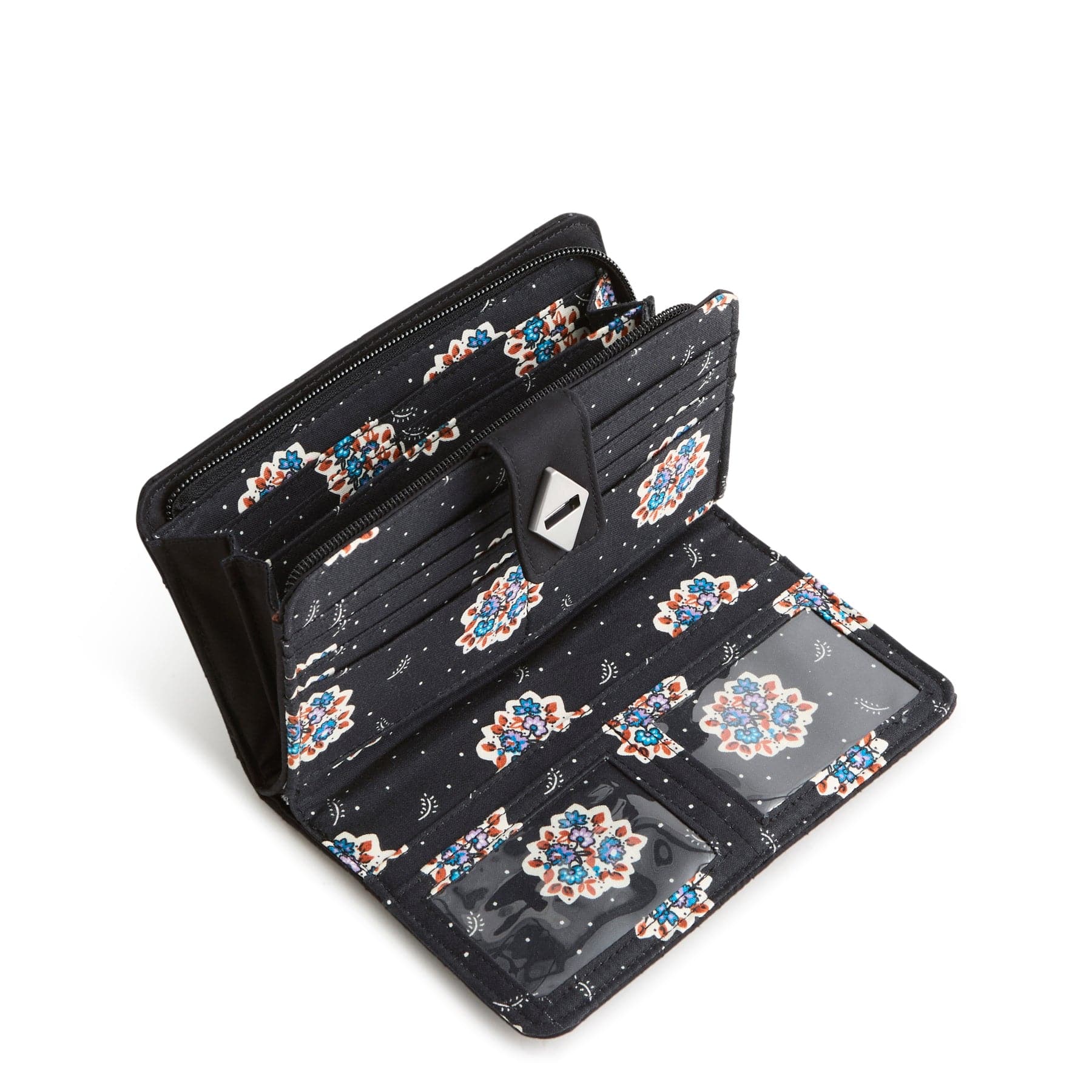 Sophisticated and thoughtfully designed, this Turnlock Wallet keeps everything beautifully in place. Featuring two dedicated compartments — one secured with a sleek zip closure and the other finished with a refined turnlock — it offers effortless organization without sacrificing style. Multiple pockets keep cards, cash and essentials neatly arranged, making it the perfect blend of form and function for everyday ease.