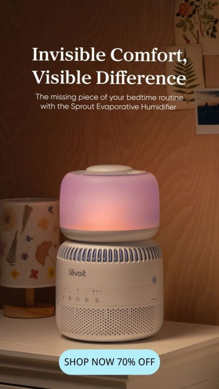 Guided by sleep science and designed for wellness, the Levoit Sprout Air Purifier combines advanced filtration, ambient sound, and soft lighting to support relaxation and promote a more restorative sleep environment.